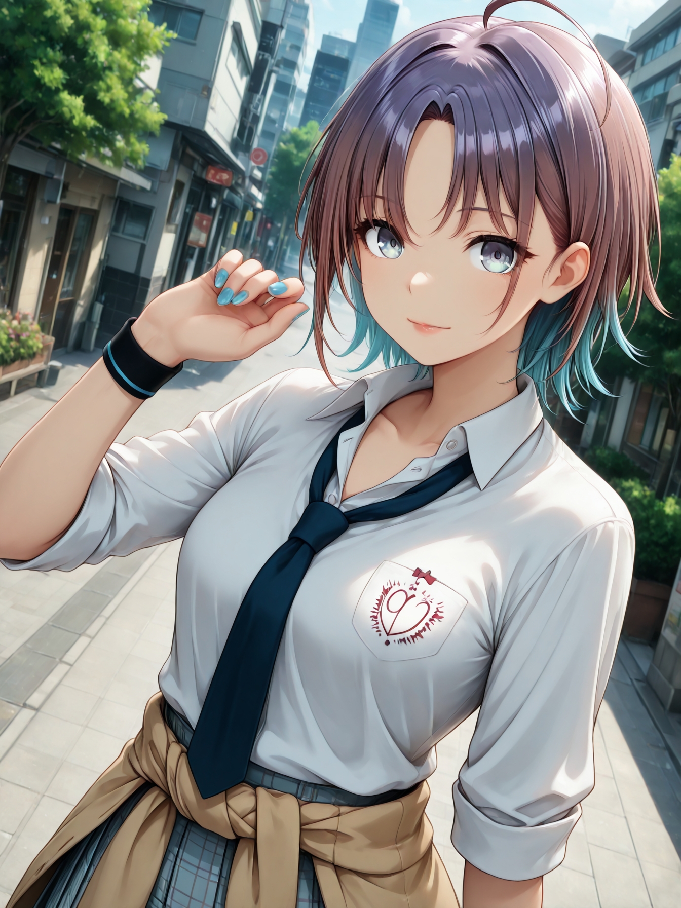 トリガー:朝倉徹、短髪、灰色の髪、アホ毛、薄い青い目、胸、中程度の胸、