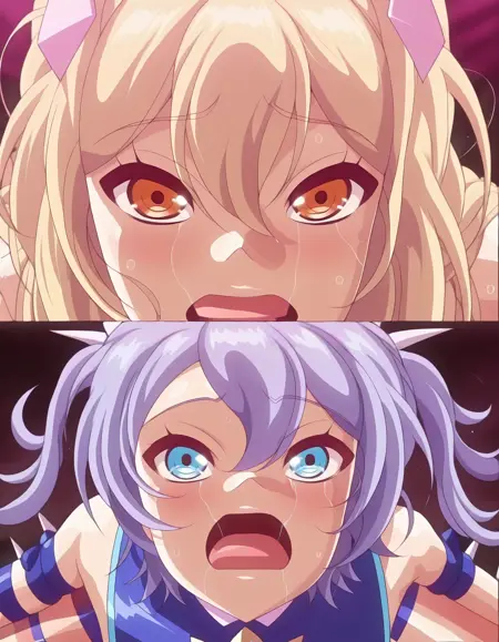 애니메이션 "Soukou Seiki Ysphere Ingyaku no Sennou Kaizou 装煌聖姫イースフィア ~淫虐の洗脳改造~ (OVA)"에 등장하는 시즈쿠 및 나츠미.