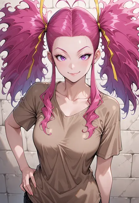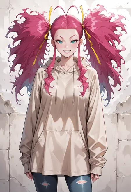 1人女の子、緑の目、青い目、アンテナヘア、水色の目、ツインテール、ピンクの髪、ロングヘア、赤い髪、サイドロックス、髪リボン、リボン、黄色のリボン