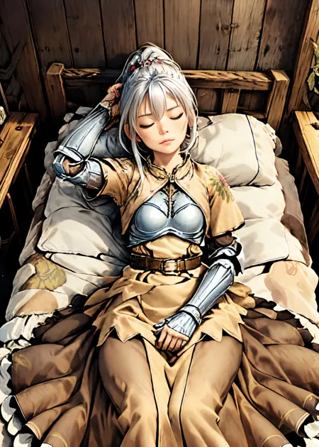 提示词:swdro,盔甲,短斗篷,护甲连衣裙,腰带,护甲手套,棕色裙