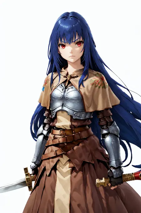트리거 프롬프트: ,swdro, 1girl, 갑옷, 벨트, 부츠, 드레스,