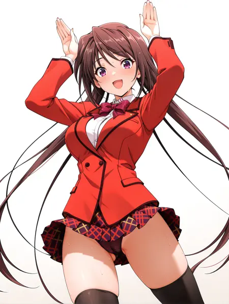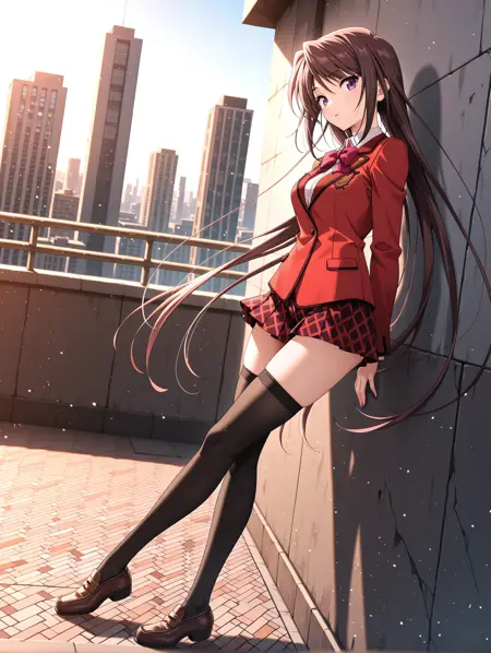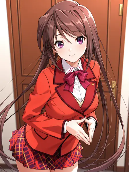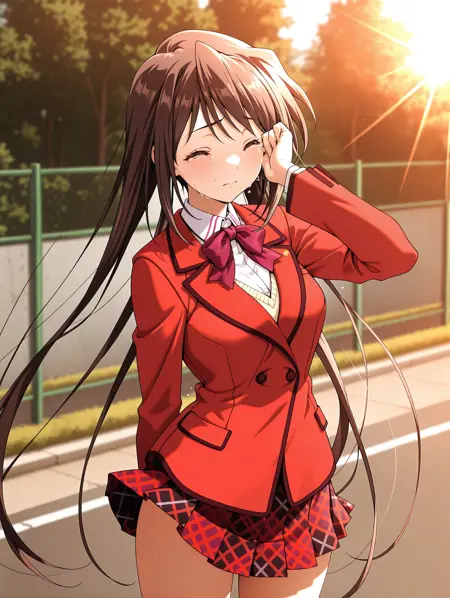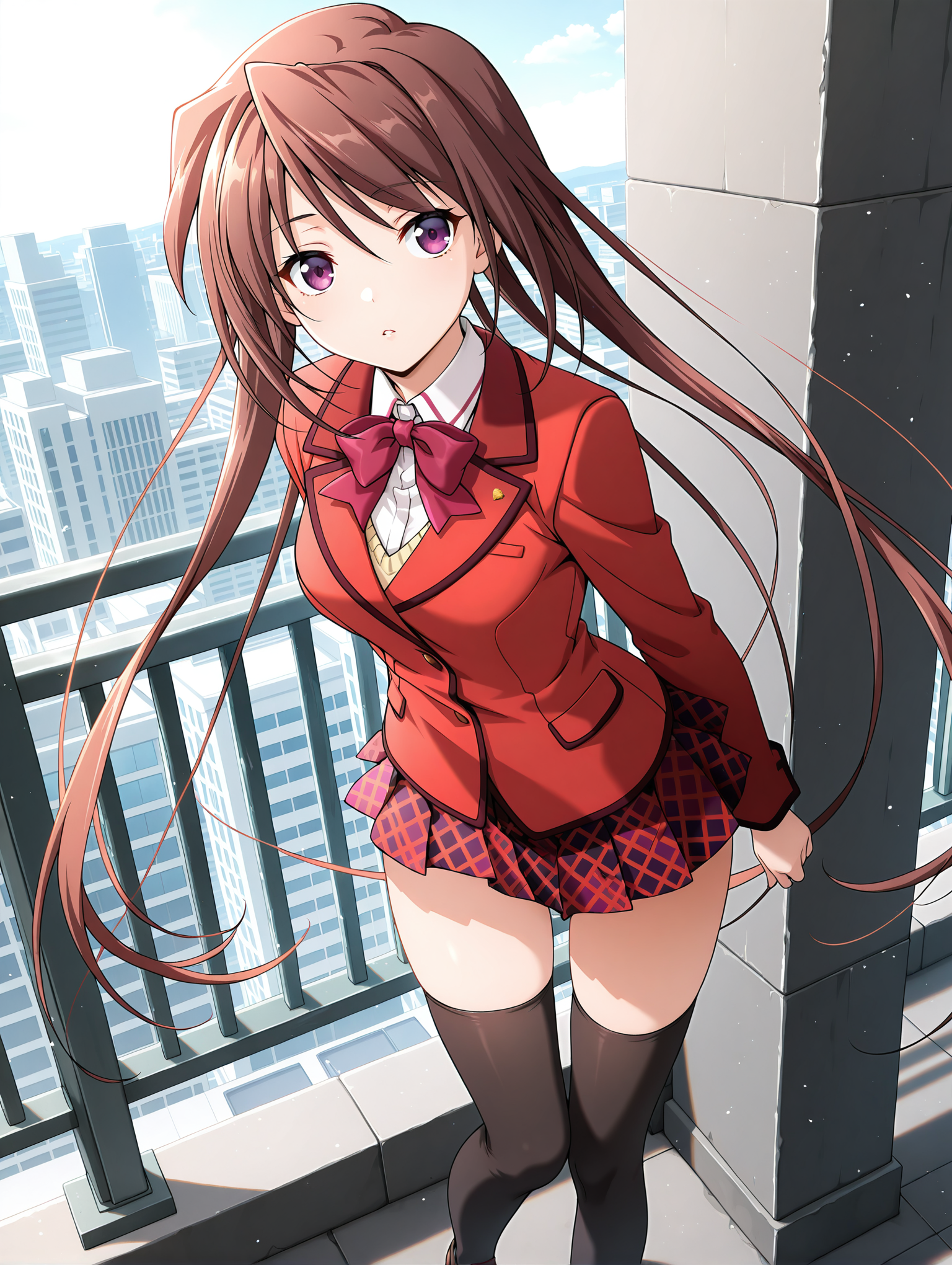 衣装プロンプト・a_clothes,red bowtie,collar shirt,red blazer,red plaid skirt,black_thighhighs,brown loafers,