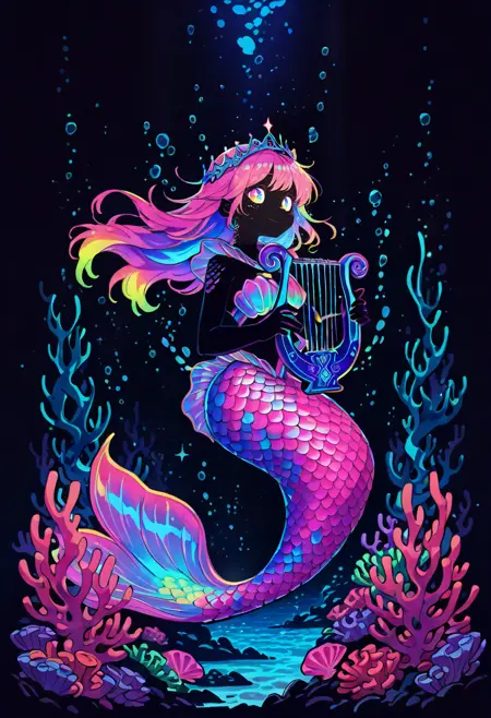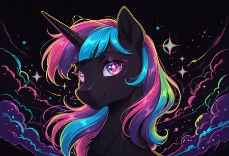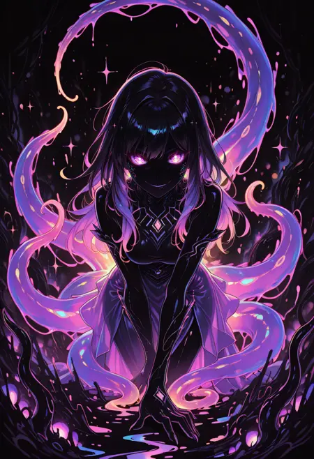 这个LoRA擅长表现深色背景、绚丽的霓虹色和酷炫的绘画效果。