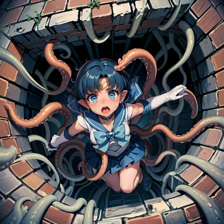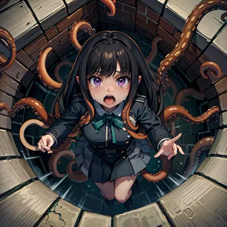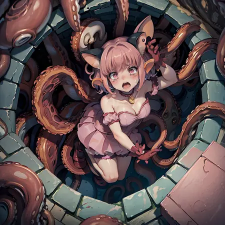 我创建了一个LoRA,其中喜爱的角色掉入了一个触手洞穴,该洞穴被视为地下城中的一个陷阱。