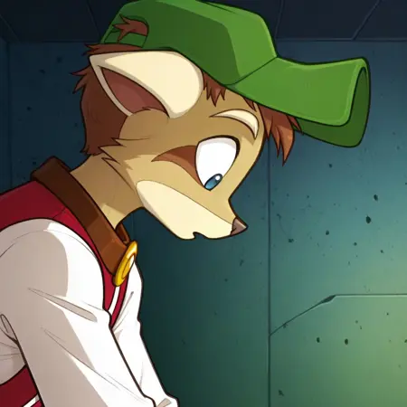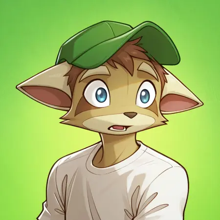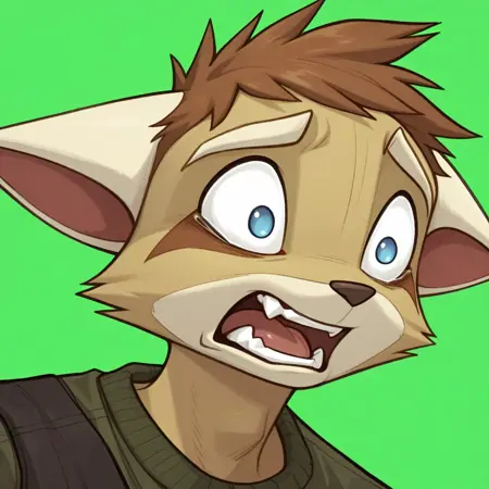 bill, 1boy, solo, furry, furry male, two tone_fur, animal ears, brown hair, blue eyes, short hair, male focus, animal nose, tail,