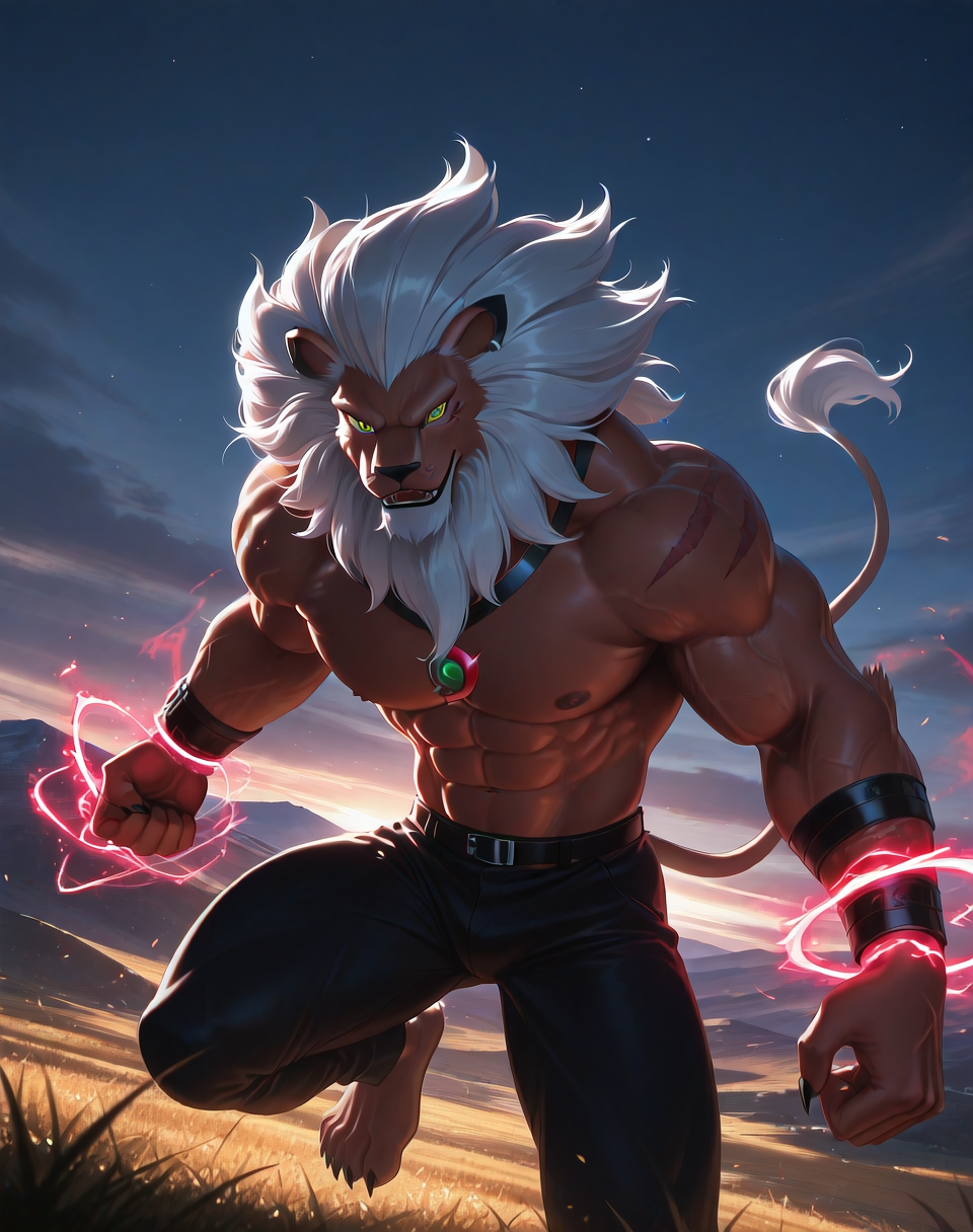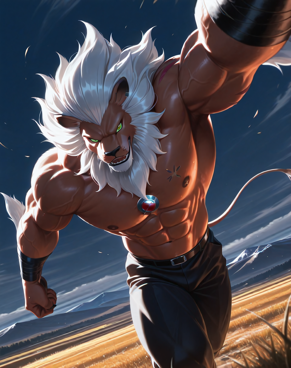 このLoRA用のプロンプトは(Regulumon, muscular, lion, Digimon, )です。
