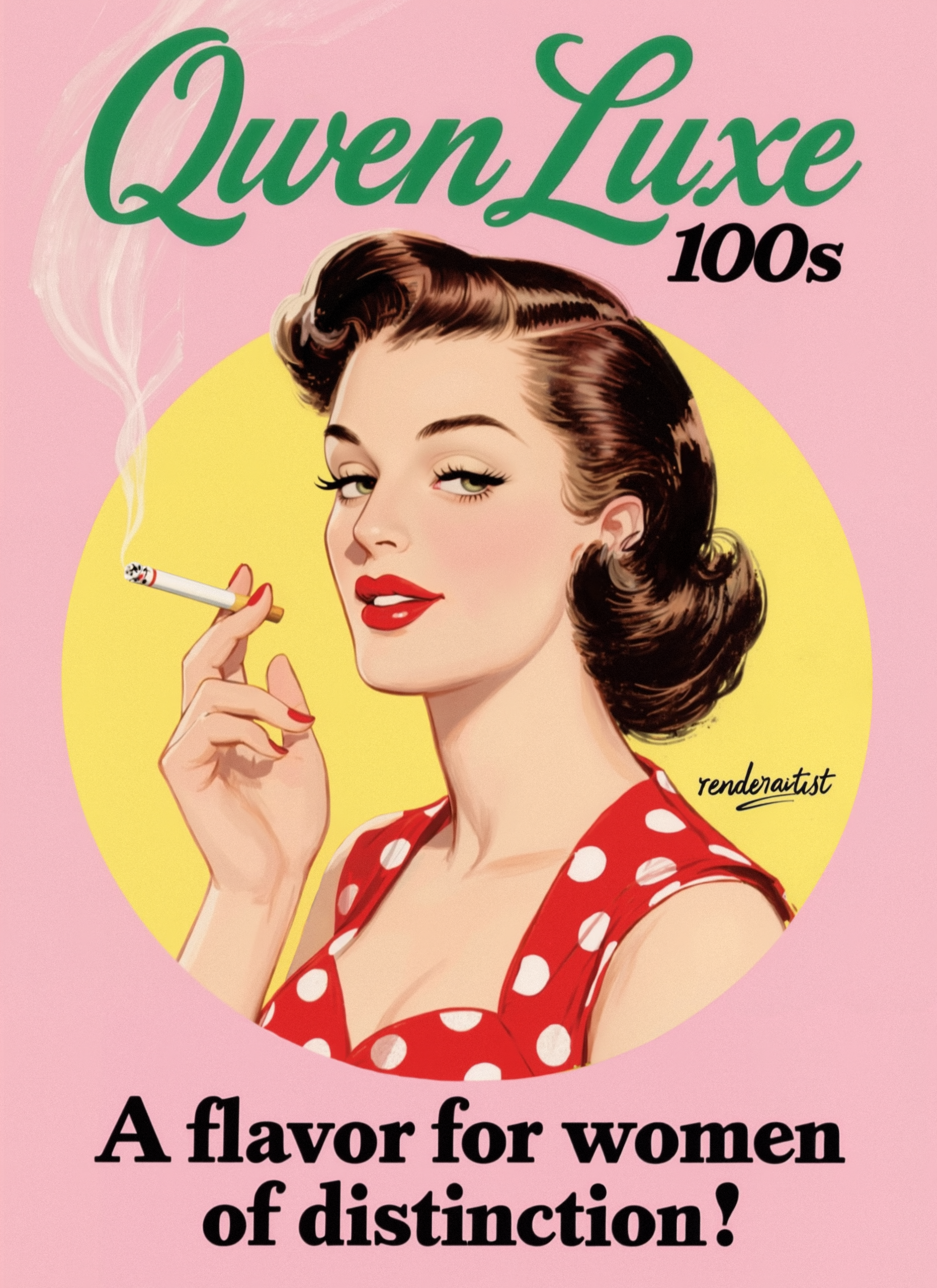 ミッドセンチュリー・ドリーム Qwenは、1950年代から1960年代の実際の雑誌スキャンから切り取った数百枚の写真とイラストを用いて学習されたQwen画像LoRAです。ソース画像は基本的に高品質でした。このLoRAはQwen自体によってやや制約されています(他のモデルと比較してやや柔らかいと感じます)が、プロンプトに少し手間をかける意欲のあるユーザーにとっては役立つ可能性があります。
