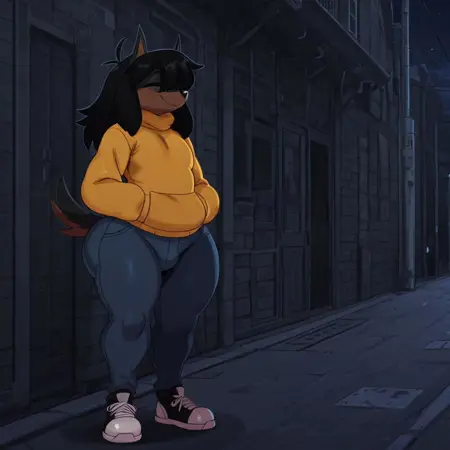 Lucas,Anthro dog,Furry male,Black fur,Brown belly,Two tone body,Yellow pupils,Long,Black hair,