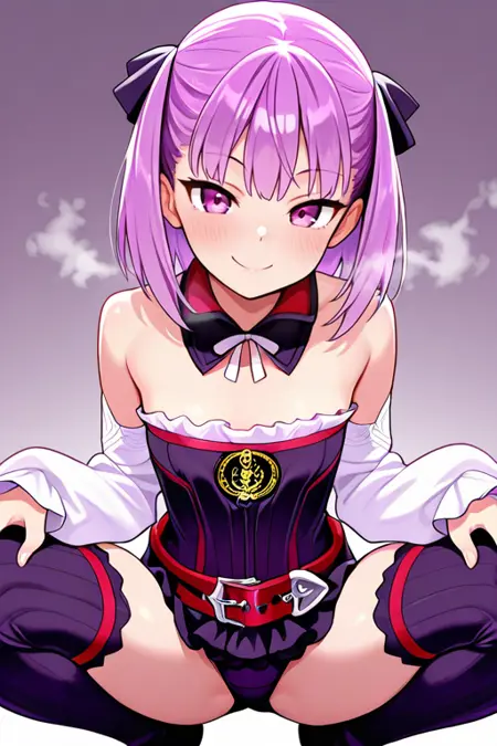 작은 가슴, helenadef, 어깨 노출, 어깨끈 없는 드레스, 분리된 칼라, 분리된 소매, 흰색 소매, 벨트, 허벅지까지 오는 양말, 부츠,