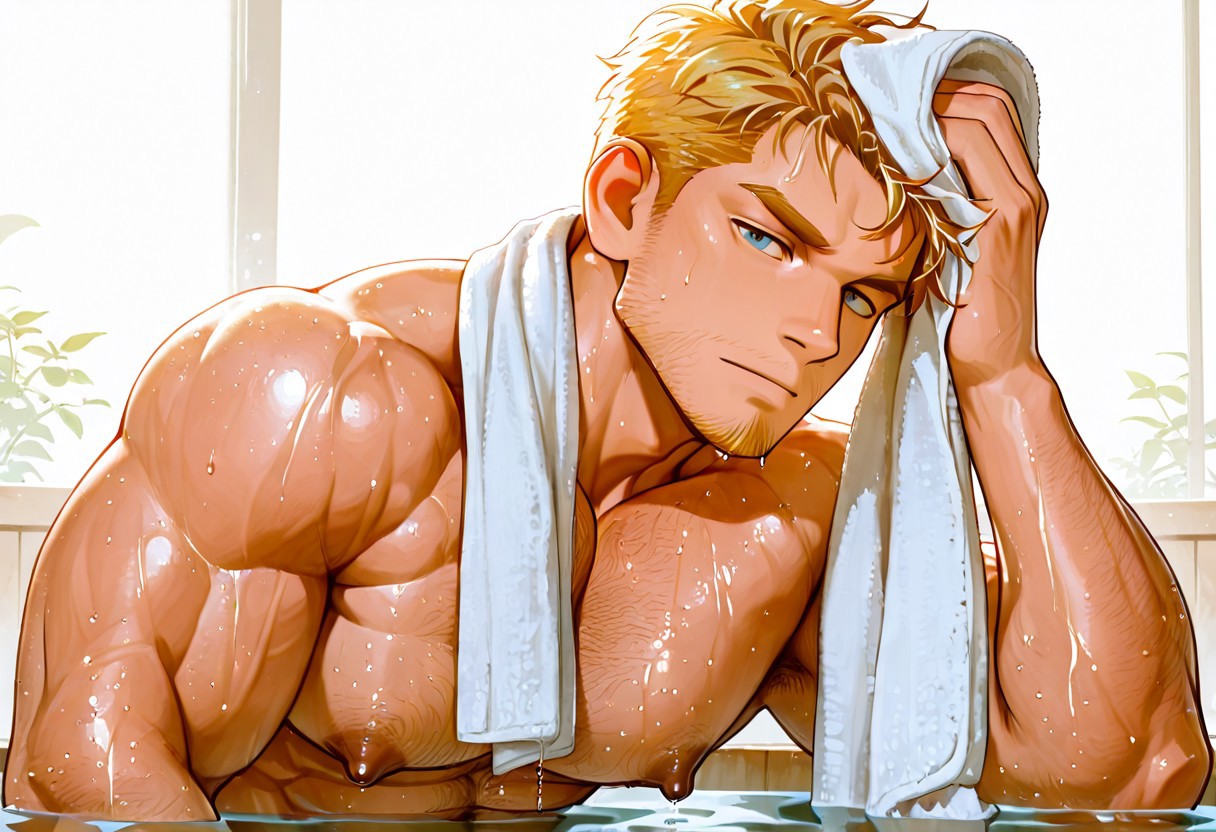 このLoRAは、タオルで体を拭く強い男性を描くために使用します。主にゲイ男性を対象としています。