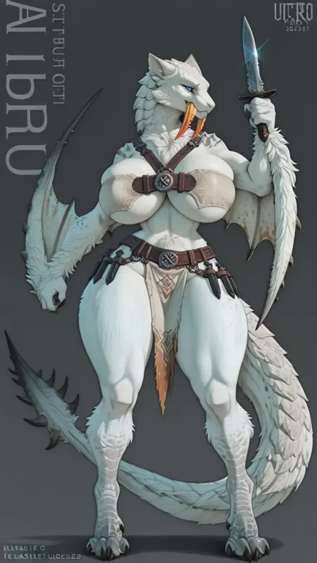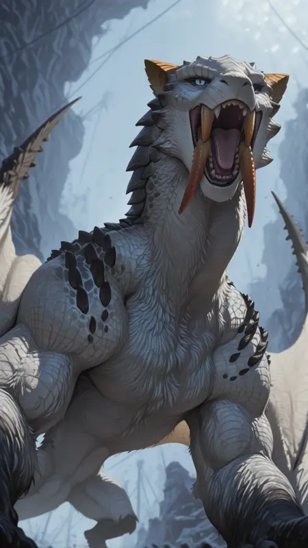 anthro wyvern, Barioth, saber fangs, winged arms, sharp claws