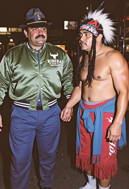 w4rr10rl3g10n style - 80s-90s pro wrestler casual wear potpourri - shoulder pads, fanny packs, Ribera jackets, Zubaz pants