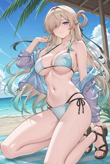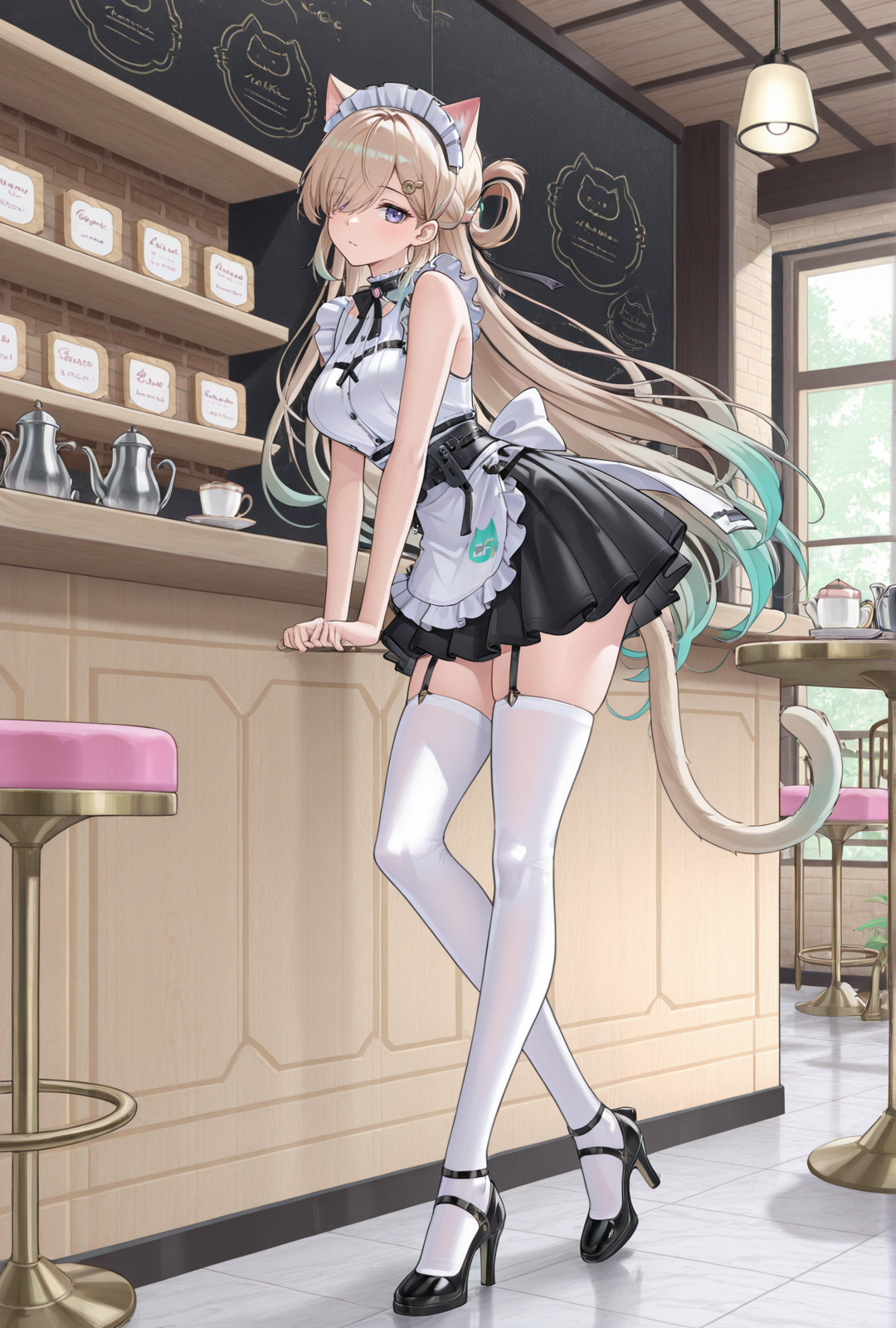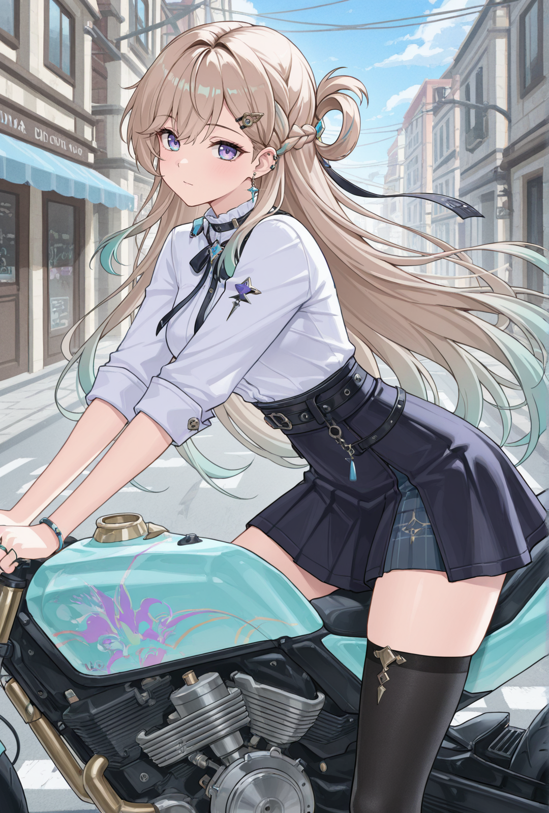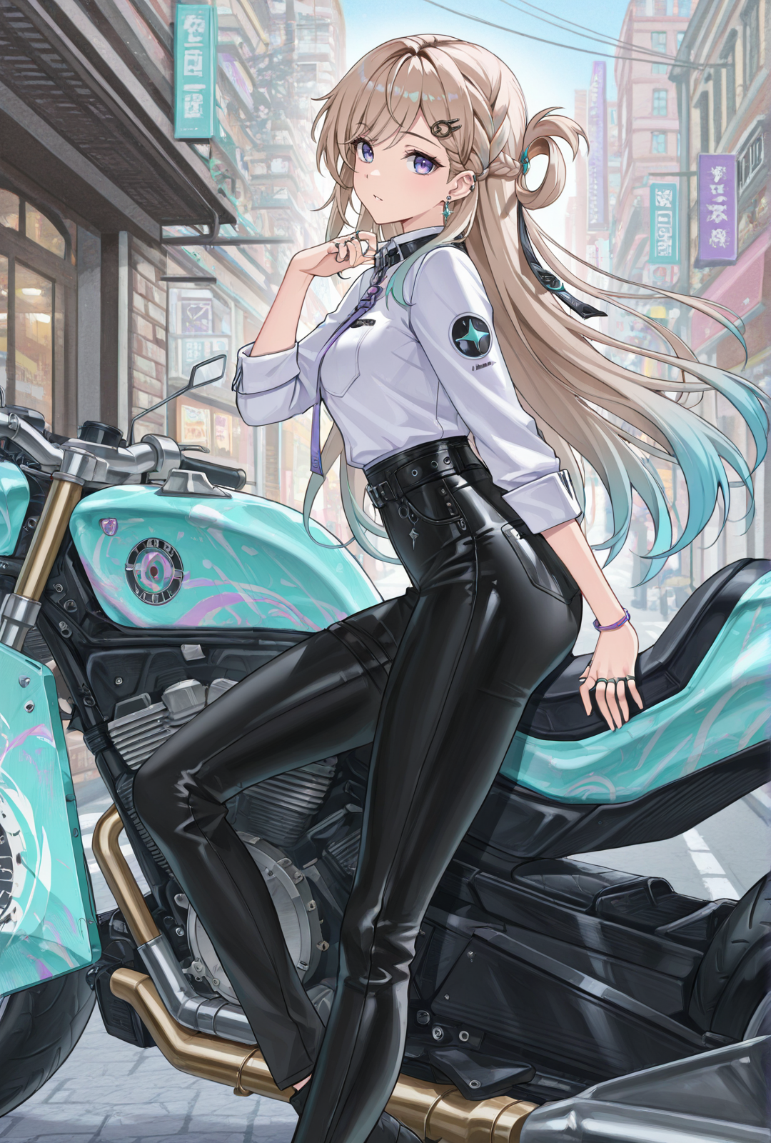 | 학습된 단어 | Lynae, 1girl, solo, long hair, blue eyes, purple eyes, multicolored hair, gradient hair, light brown hair, blonde hair, hair over one eye, half updo, hair rings복사됨! french braid, hair ornament, white shirt, earrings, pleated skirt, necktie, belt, black skirt, nail polish, bracelet, piercing, white jacket, ear piercing, sleeves rolled up, high-waist skirt, jacket on shoulders, green nails, aqua nails, hair ribbon, shirt tucked in, two-sided fabric복사됨! |
