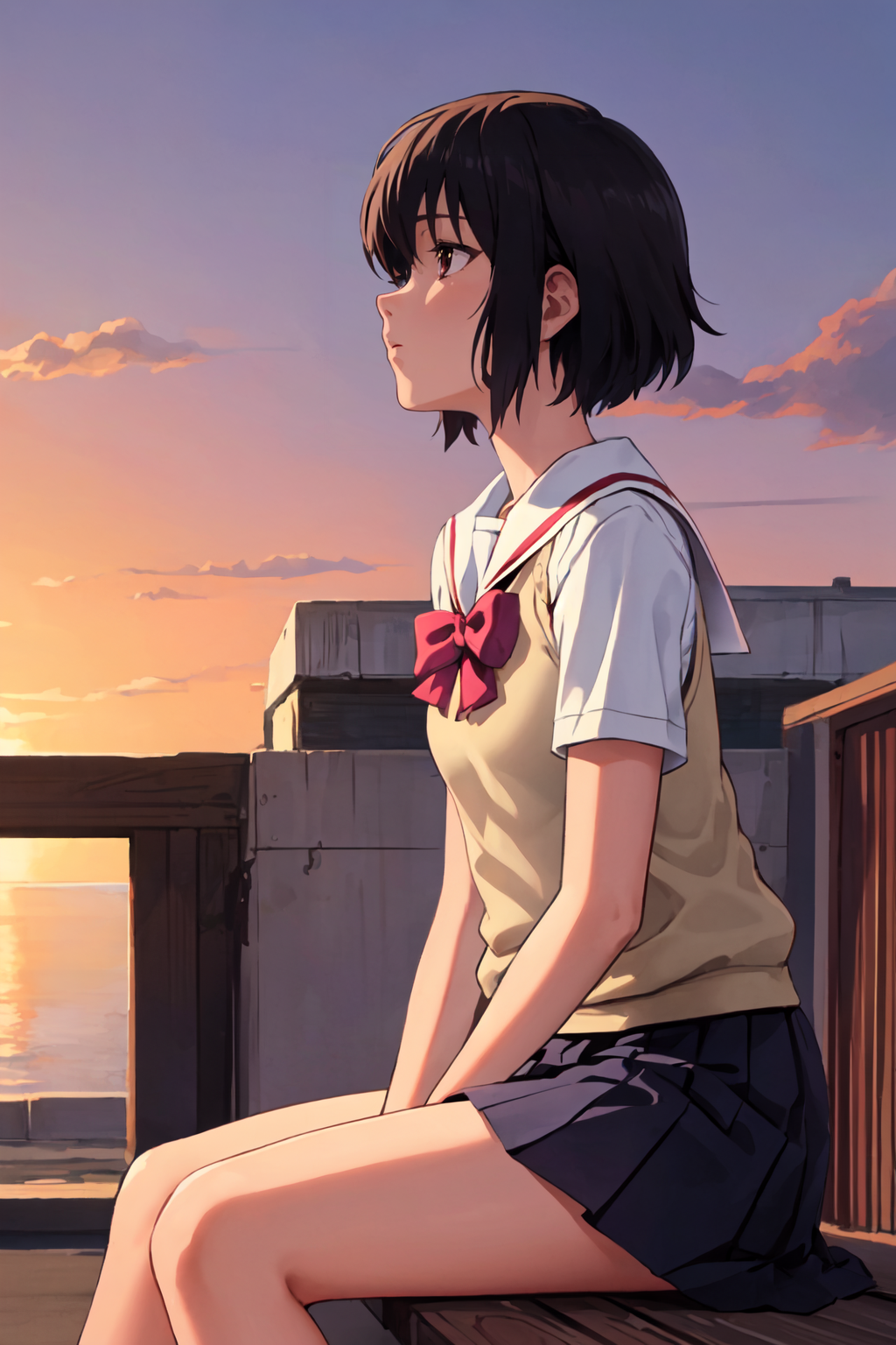 十分なファンアートを収集したので、最も象徴的な衣装(白いフード付きジャケットとデニムスカート)に加えて、学校制服も含めることにしました。