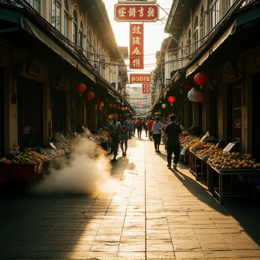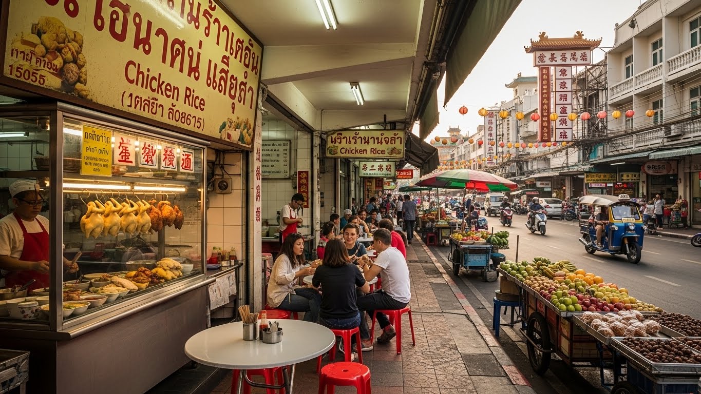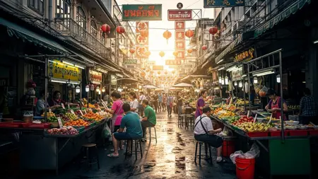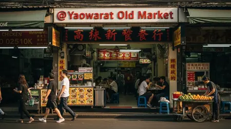 此 LoRA 捕捉了泰国曼谷著名唐人街 Yaowarat 路的热闹氛围,涵盖白天、傍晚和夜晚场景,包含街头小吃摊、霓虹灯招牌和殖民风格的店铺建筑。