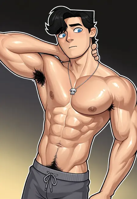 h2nt3r, black hair, side swept bangs, blue eyes,