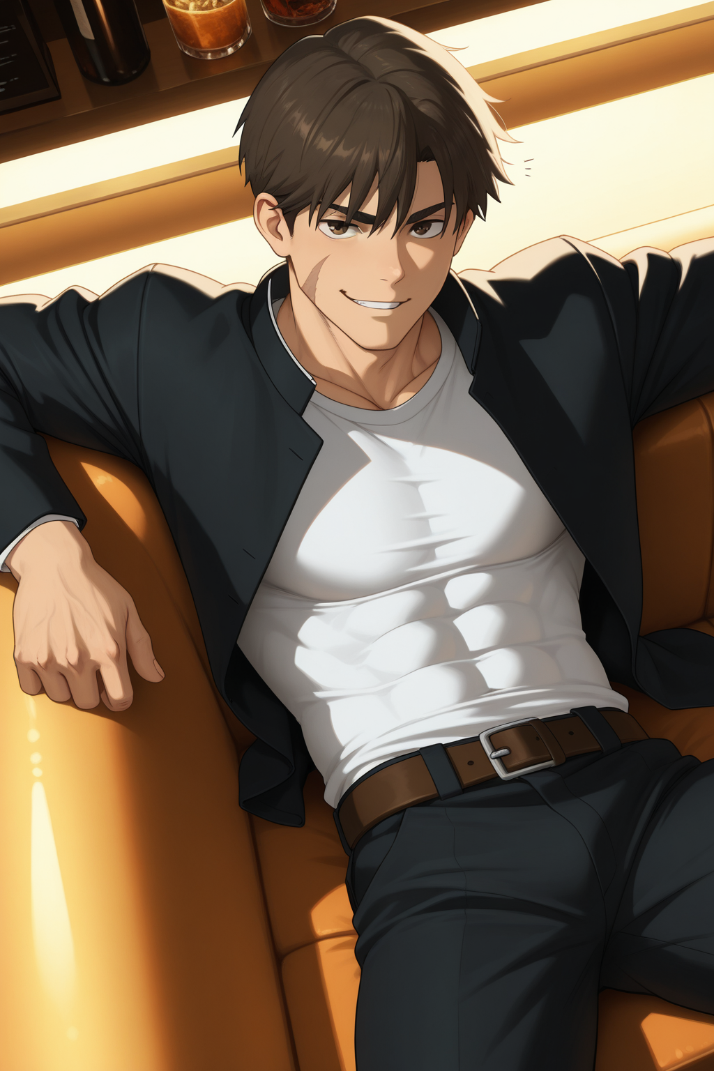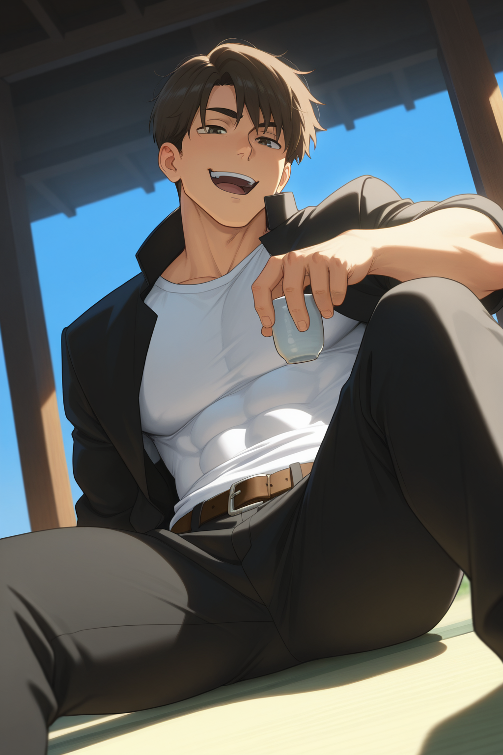 black pants,white shirt,covered abs,gakuran,open gakuran,belt