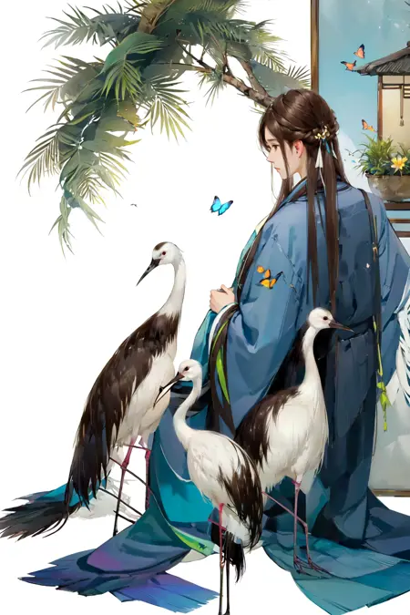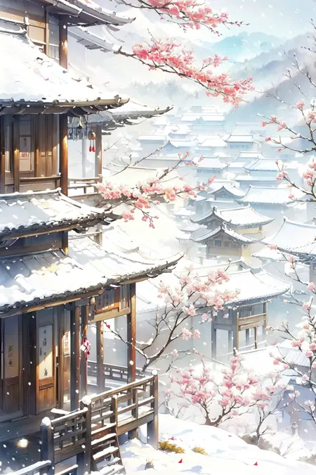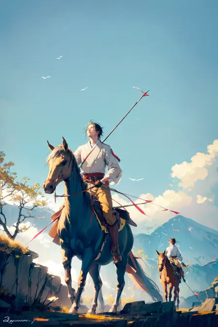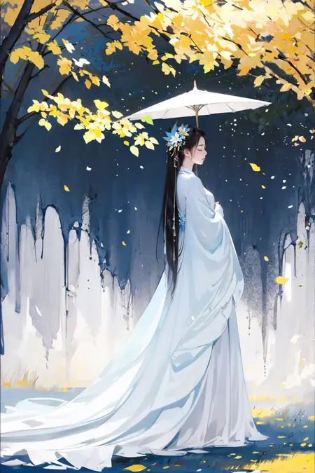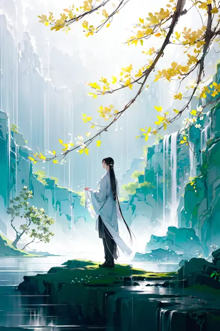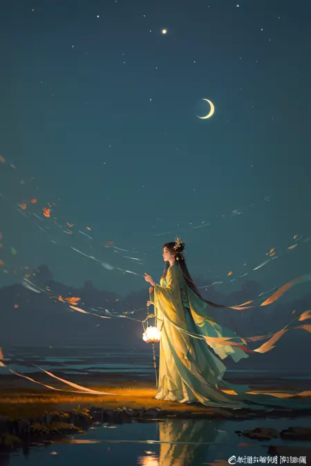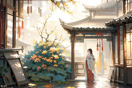 이 모델을 훈련한 목적은 고시처럼 우아한 정서를 지닌 스타일을 구현하기 위해서였습니다. 따라서 중국풍 수채화 일러스트를 많이 수집하여 훈련 데이터셋으로 사용했습니다. 남성, 여성 캐릭터뿐만 아니라 중국풍 건축물도 표현 가능하며, 전반적으로 수채화의 번짐 느낌을 지닙니다. 장식용 스타일로 활용하실 수 있습니다.