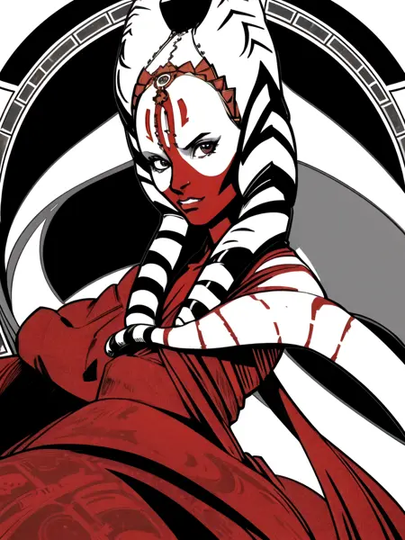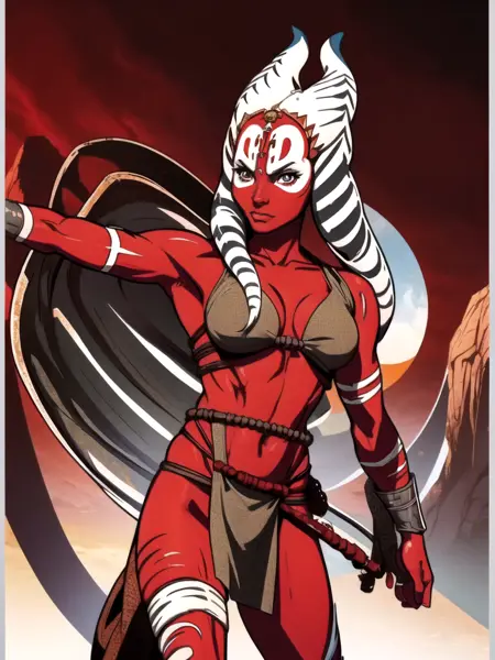 如果你想让她在《星球大战:异等小队》中的外观,那就试试加上“部落风格、腰布、tfu”以及一些我这里不详述的更多描述性内容。