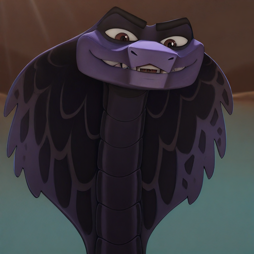 saladin, feral, , snake, cobra, reptile, snake hood, white sclera, brun eyes, round dark pupils, dark-violet body, dark-violet scales, black body, black scales, two tone scales, solo, dark body markings long body, fangs, forked tongue, night desert, male, different angles face, cobra dance