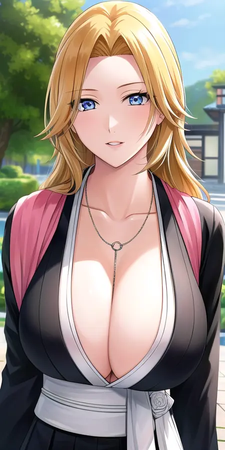 - Black_kimono_Black_hakama_skirt_White_sash_Pink_shawl_Cleavage:彼女の死神の制服。