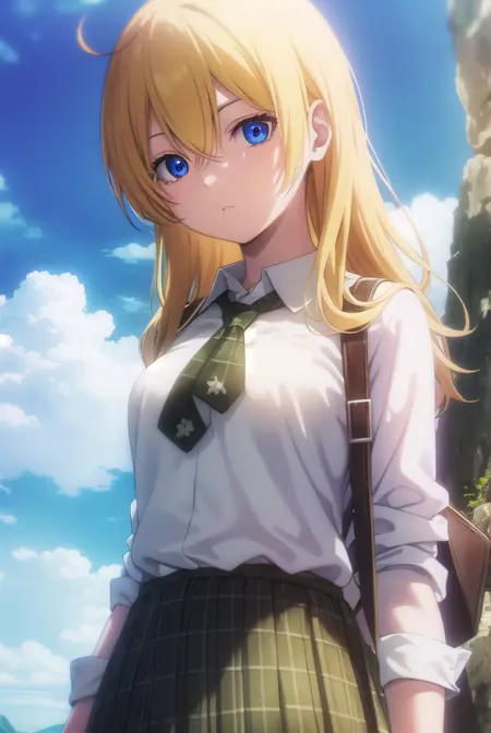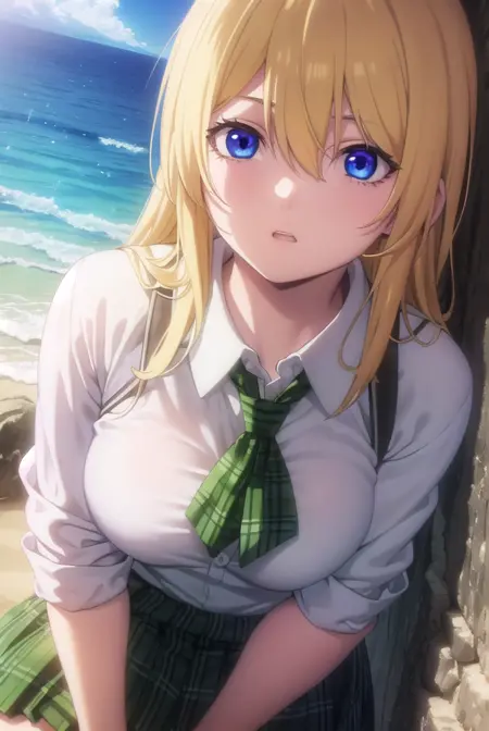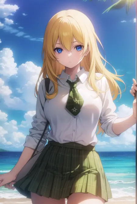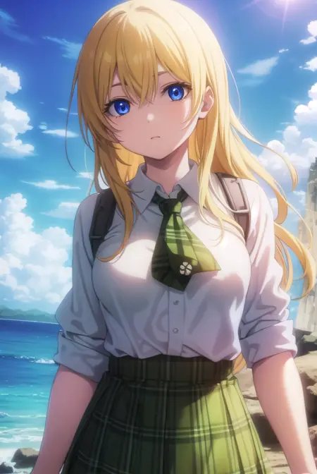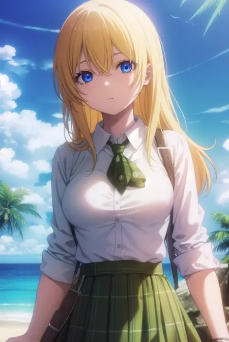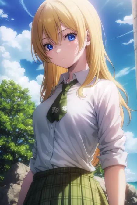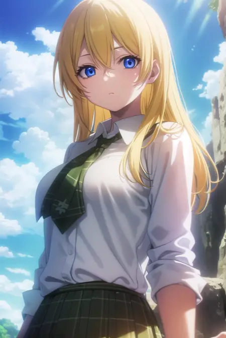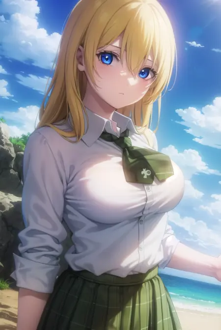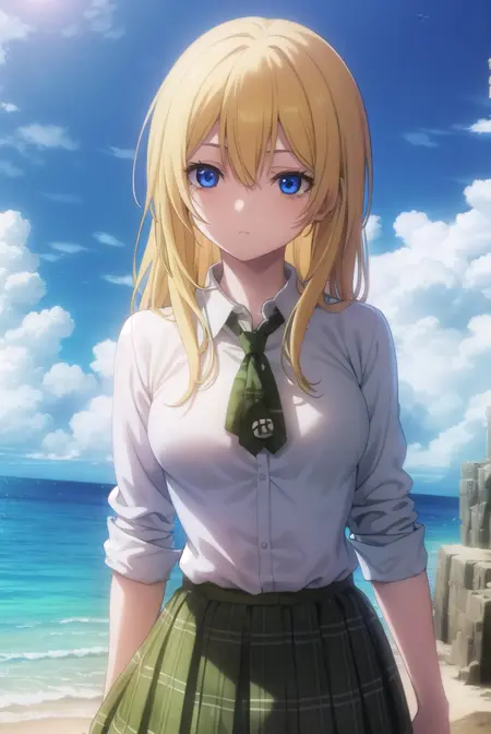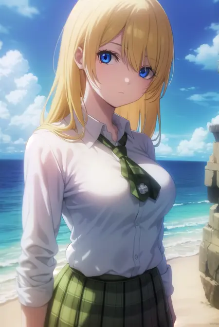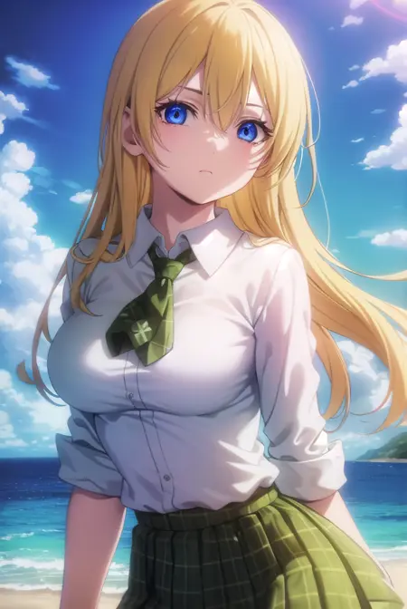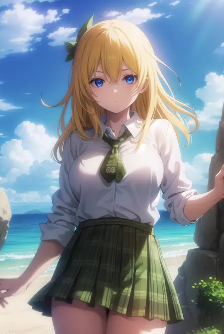 skirt, shirt, school uniform, white shirt, pleated skirt, necktie, shoes, socks, plaid, plaid skirt, loafers, sleeves rolled up,