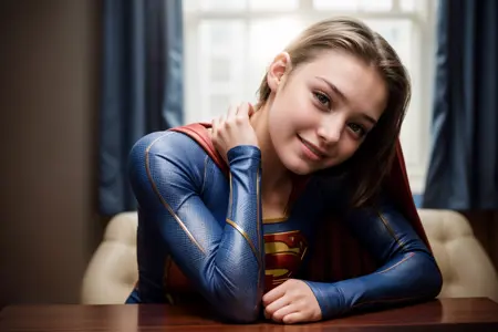 提示:将她的头和手臂放在桌子上