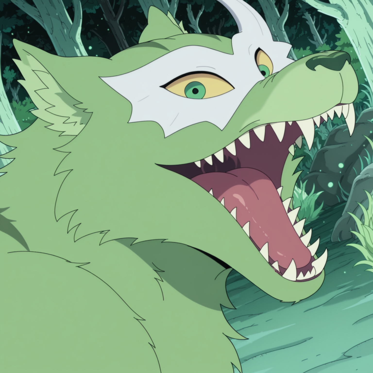 Witch Wizard from Fionna and Cake in her beast/feline form when she's fighting Huntress Wizard. The image set trained on this lora is low since she's not in this form for long, but it surprisingly works well. Sometimes the mask doesn't come out right, but a majority of the time it does. If you do side angles though, then it'll almost never come out right. The mask is also removable. It'll also produce pink teeth sometimes, so put "pink teeth" in the negative prompts. It's also tough to get her with 6 legs since she's a hexapod. Everything else works pretty well.
