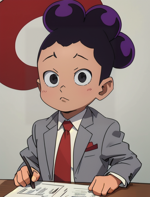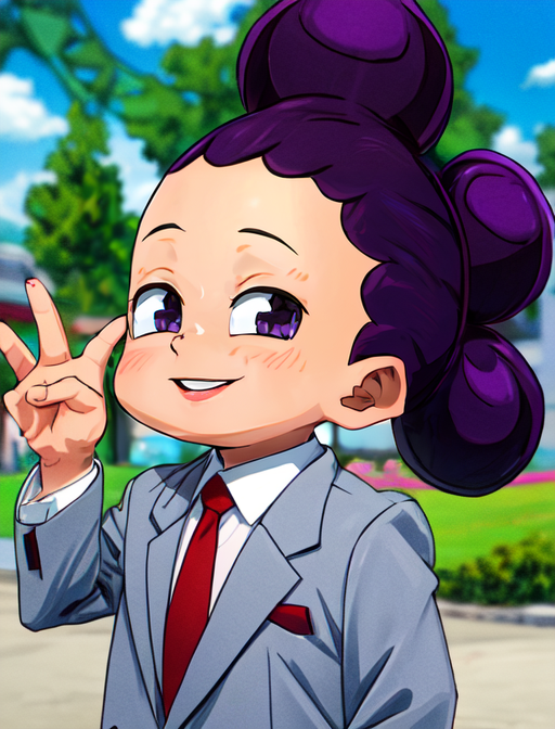 追加のヒントとなる言葉: 男の子、1boy、紫の髪、4つの髪の結び目