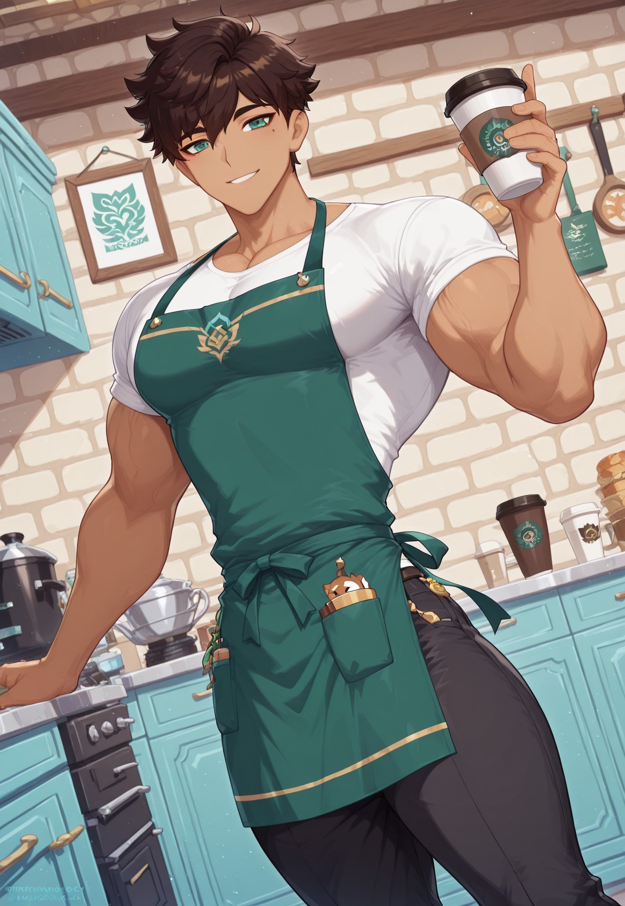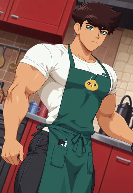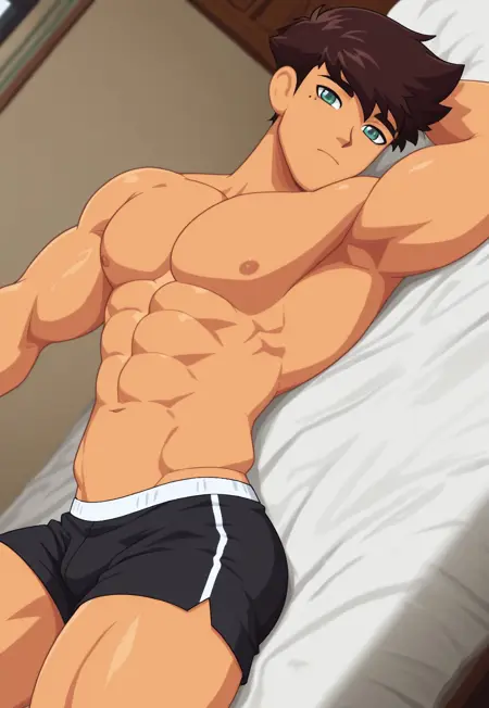 nathaniel \(lolirock\), tan skin, short hair, dark brown hair, green eyes, mole, mole under eye