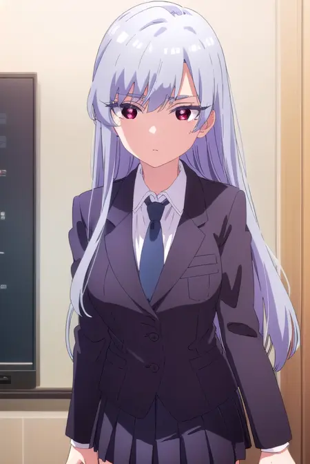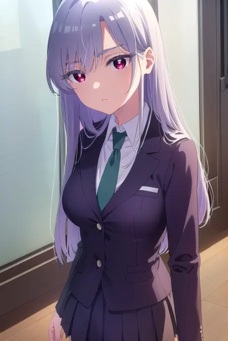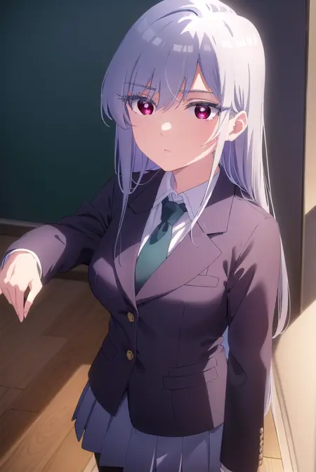 스커트, 셔츠, 긴 소매, 학교 유니폼, 재킷, 흰 셔츠, 팬티스타킹, 주름스커트, 넥타이, 칼라 셔츠, 미니스커트, 검은 팬티스타킹, 단추, 블레이저, 주머니, 보라색 스커트, 갈색 팬티스타킹,