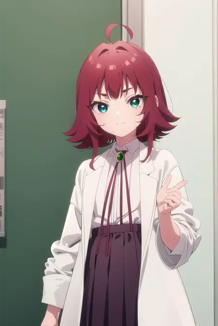 kusuri yakuzen 大,红发,(绿色眼睛:1.3),马尾,天线发,眼镜,半框眼镜,白大褂,胸部,内衣,胸罩,