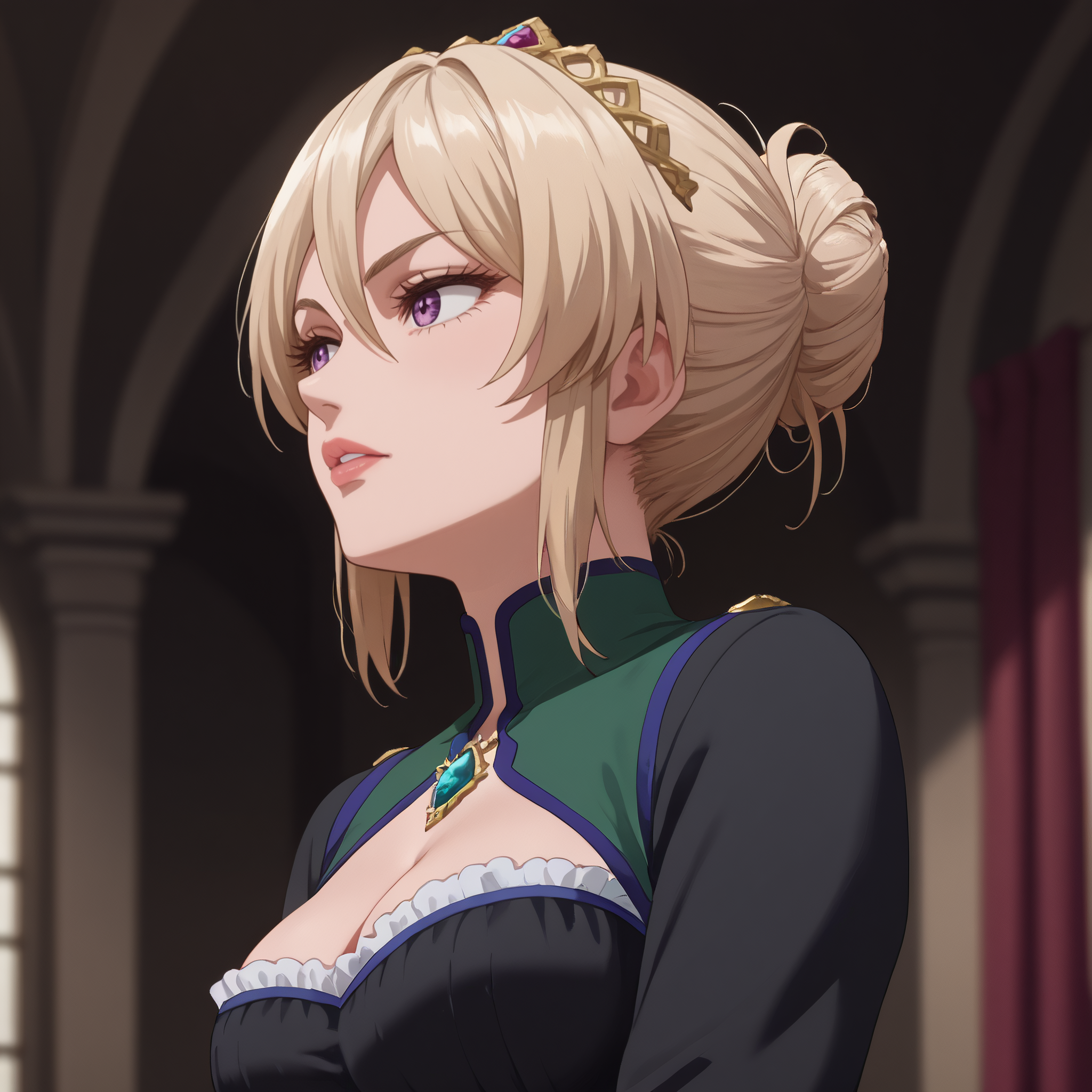 A4OAmaranthus, 금발, 단발, 앞머리, 보라색 눈, 눈 사이의 머리카락, 머리묶음, 옆머리,