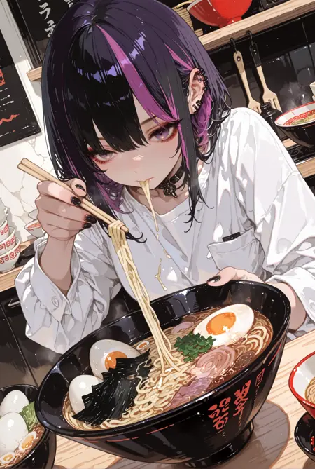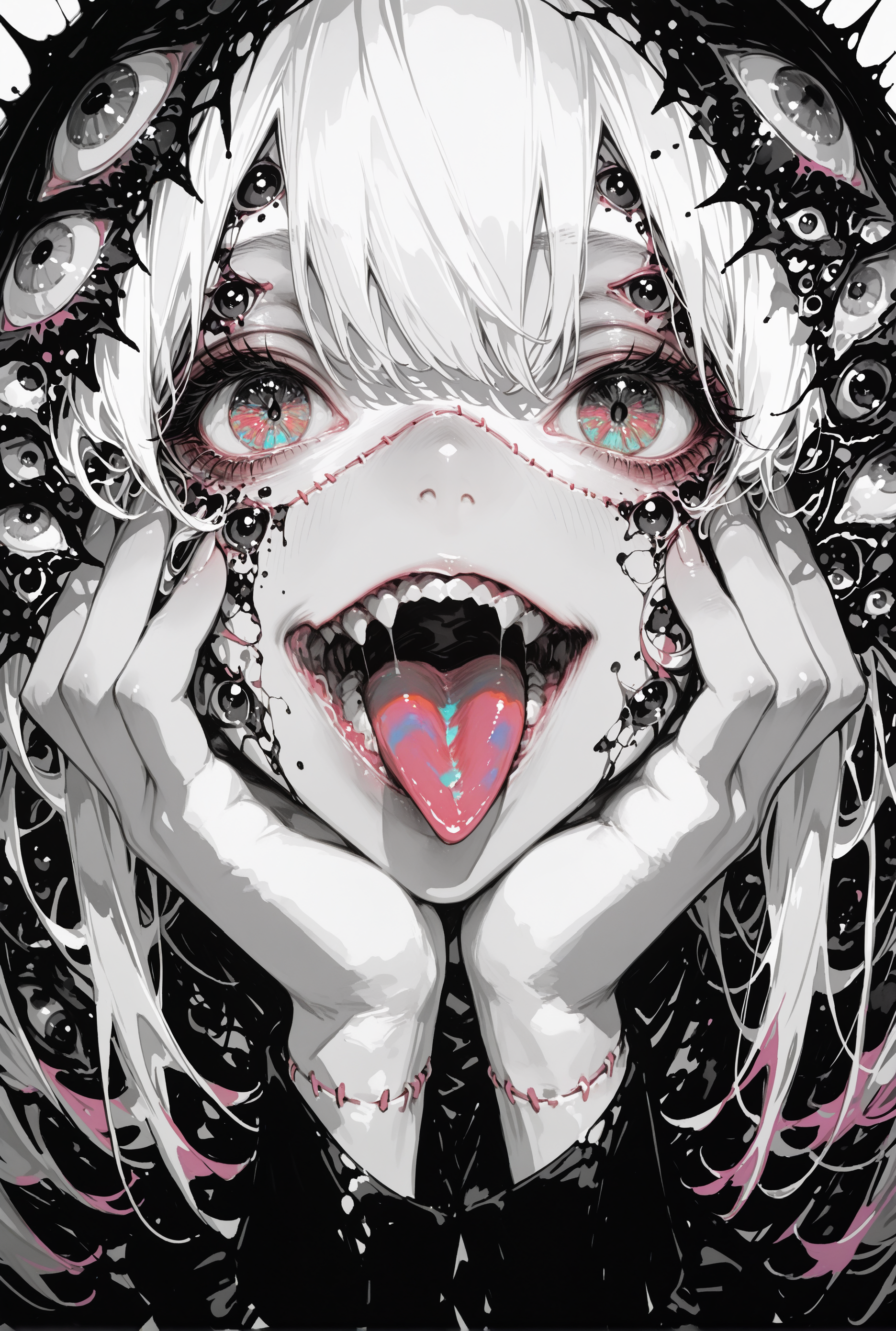 캐릭터들은 운명에 스며든 듯 느껴진다. 키모노 꽃잎이 빛나는 전사들, 네온 심장을 지닌 조용한 음악가들, 천상의 금빛 아래 부드럽게 구부러진 천사들, 라면을 먹으며 마치 우주 전체가 그 그릇 안에 있다고 느끼는 소녀들, 불가능한 푸른 하늘 아래 앉아 꿈꾸는 이들.