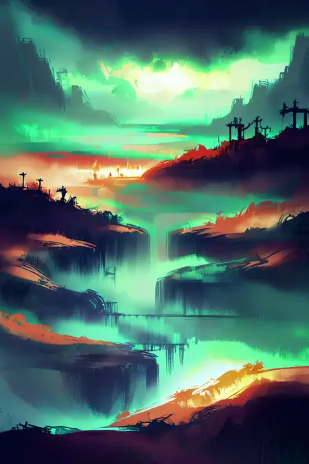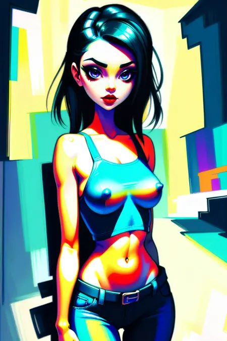 Another stylized LoRA. This one favors high contrast, expressionism, and generally cheerful colors. It works across a wide range of weights. Turn it down to 0.25 for a subtle effect, or up to 2.5 for a complete transformation into something abstract and crazy.