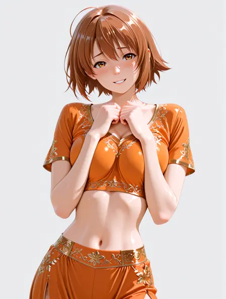 보조: 반짝이는 실크, 부드러운 그림자. 매끄러움 (매끄러운 실크 텍스처:1.3), ((깊은 슬릿:1.4))