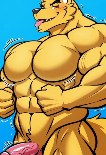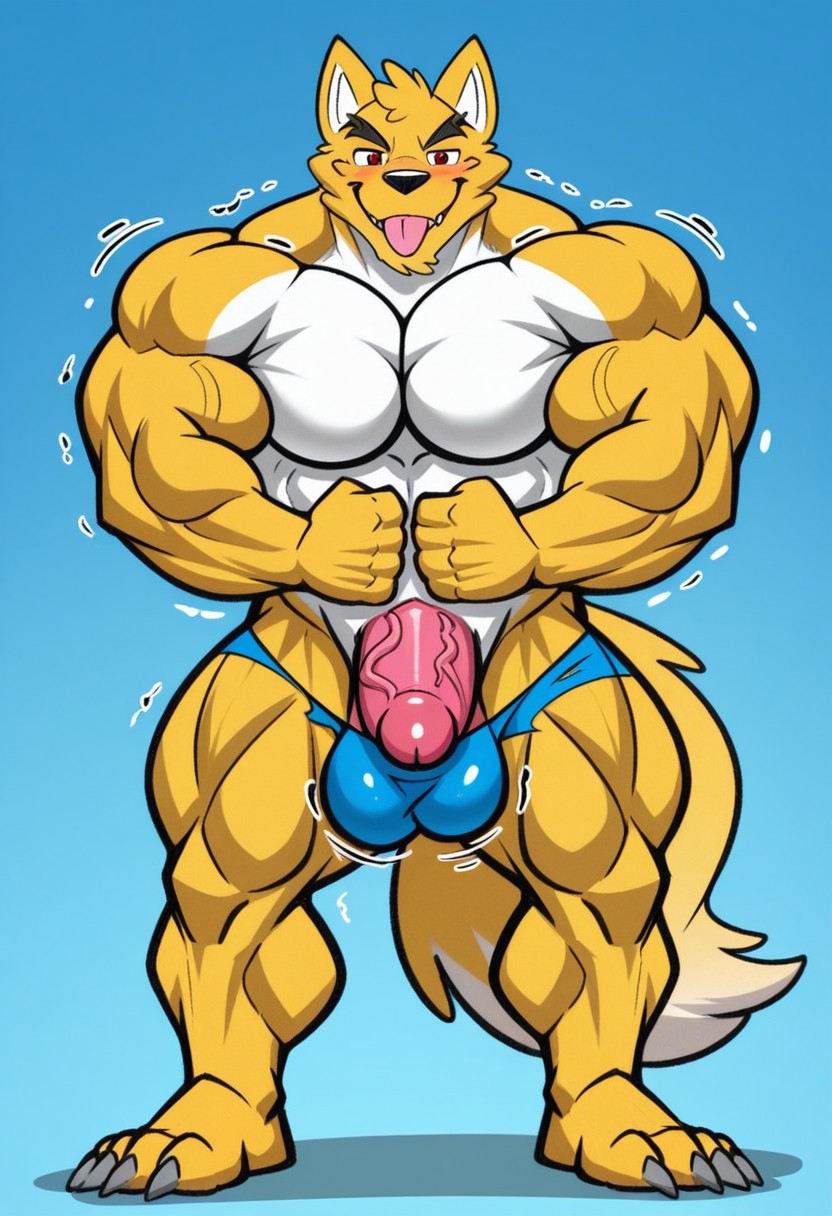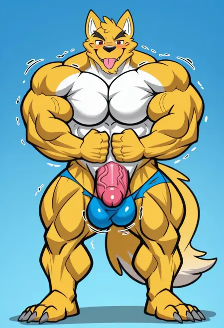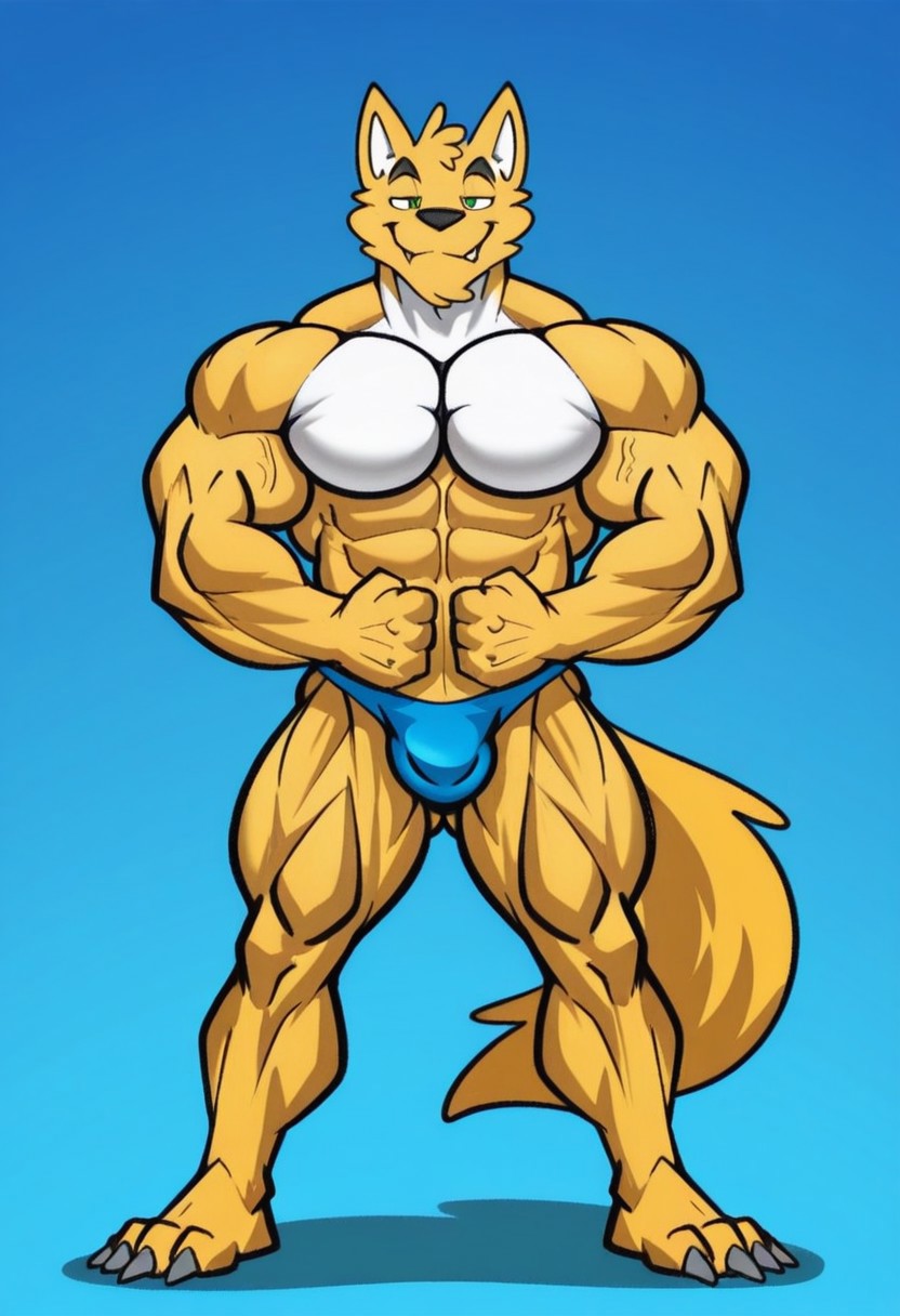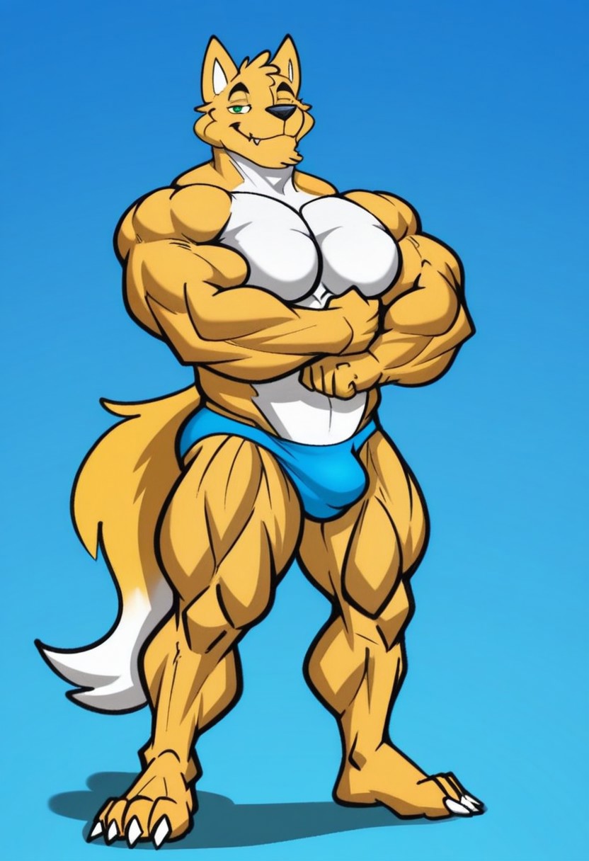 • 강화 프롬프트: "푸리, 남성, 녹색 눈, 노란 털, 늑대 꼬리"