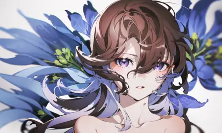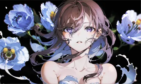 Steps: 20, Sampler: DPM++ SDE Karras, CFG scale: 5.5, Seed: 2308100336, Size: 512x1024, Model hash: 79846849a1, Clip skip: 2, ENSD: 31337vvi\(artstyle\), 1girl, solo, blue eyes, parted lips, brown hair, flower, looking at viewer, bangs, portrait, lying, blue flower, long hair, colorful, long sleeves, grass, close-up, liquid hair,lora:Vivid\_Impactful\_Style\_locon\_v4h:0.7
