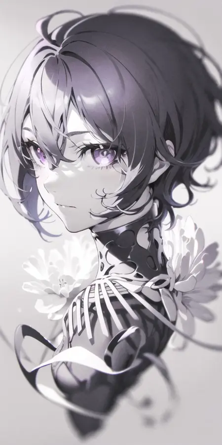 Steps: 20, Sampler: DPM++ SDE Karras, CFG scale: 5.5, Seed: 872925101, Size: 512x768, Model hash: 79846849a1, Clip skip: 2, ENSD: 31337vvi\(artstyle\), 1girl, solo, flower, long hair, green eyes, looking at viewer, black background, smile, white flower, hair between eyes, floating hair, closed mouth, portrait, bangs, bare shoulders, grey hair, lily (flower), simple background, eyelashes, white hair, yellow eyes, eyes visible through hair, upper body,lora:Vivid\_Impactful\_Style\_locon\_v4h:0.7