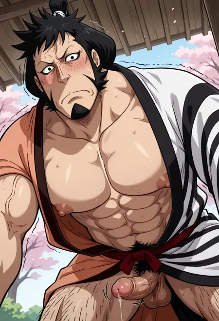 Kin'emon, Mature male, Black eyes, black eyeliner, black hair, facial hair, sideburns, veins, wrinkle,