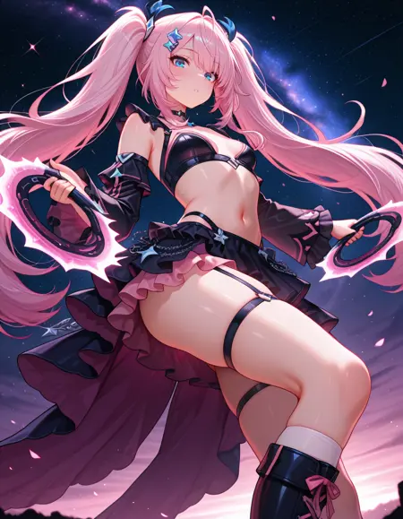 berricaark,1girl,粉发,长双马尾,长发,小胸,蓝眼,