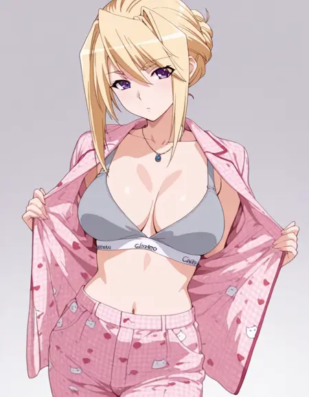 Pink pajamas. Why aren't the buttons fastened?~