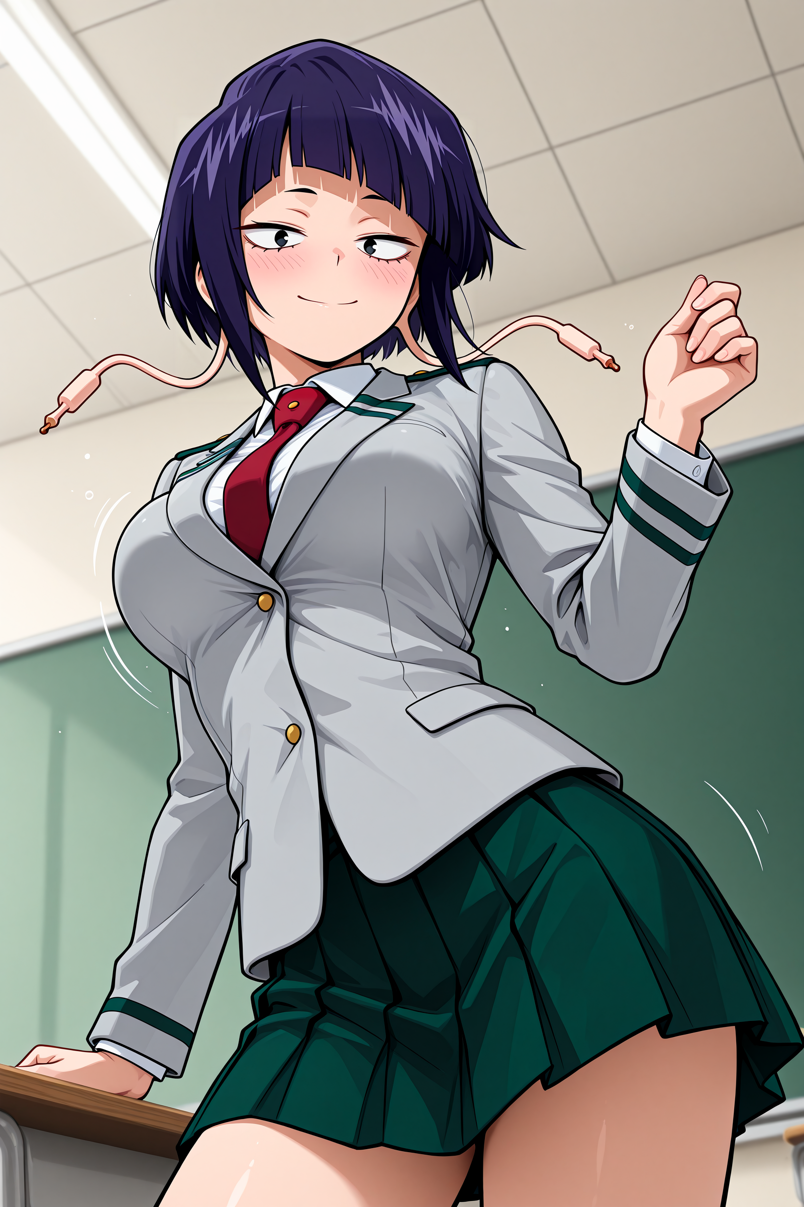 服装: U.A. 校服,百褶裙,绿色裙子,白色衬衫,有领衬衫,长袖,灰色夹克,西装外套,红色领带