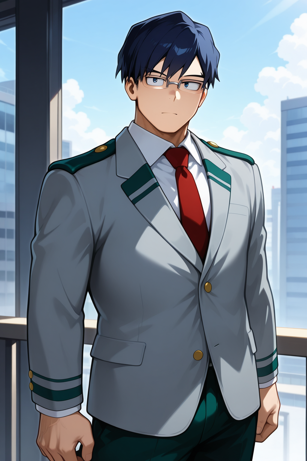 例如:校服,灰色夹克,白色翻领衬衫,红色领带,运动服