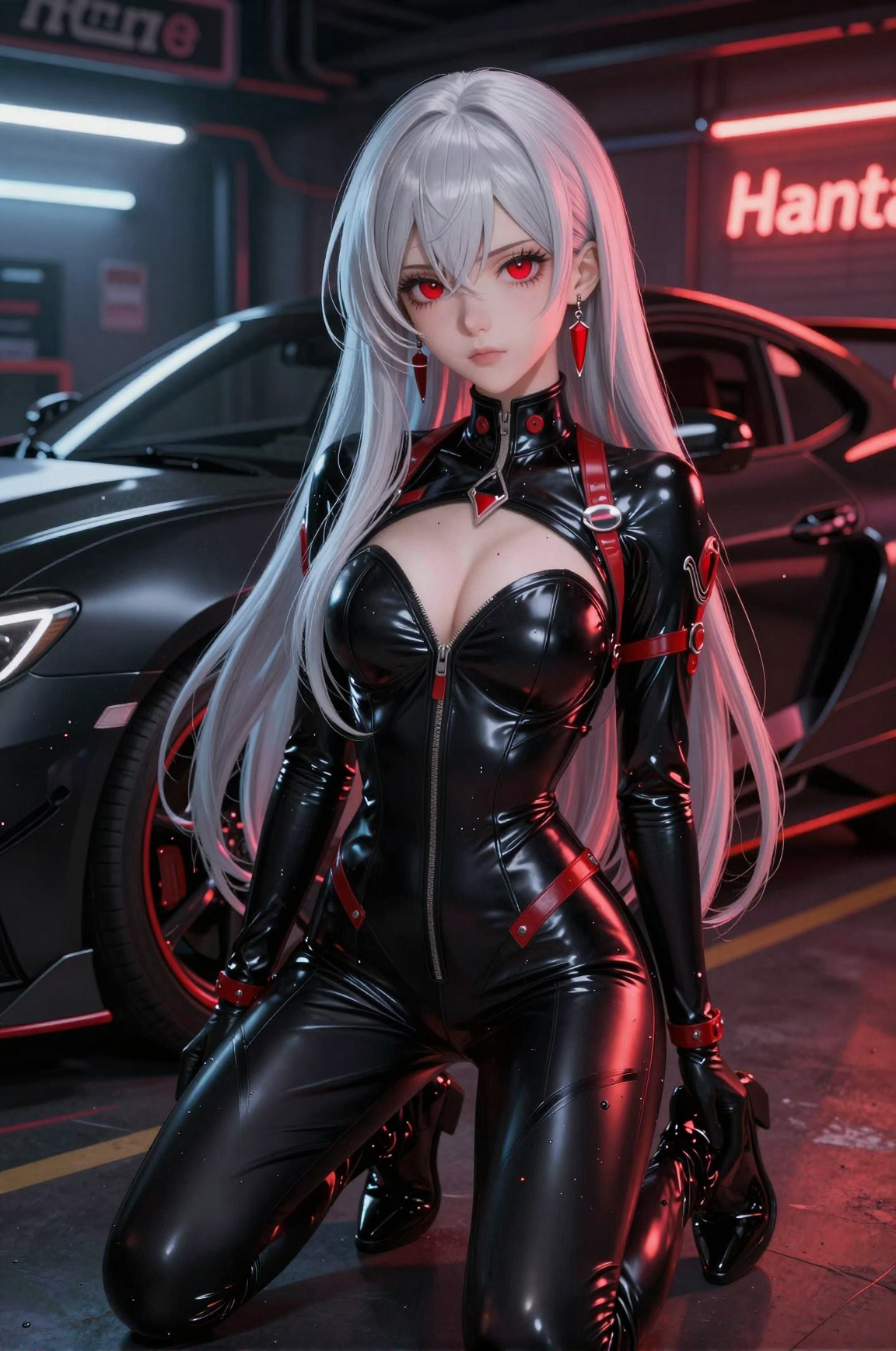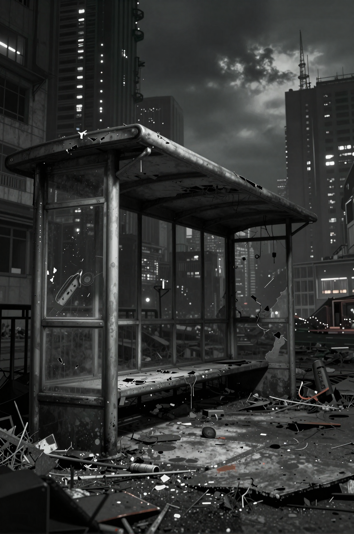 入口上方霓虹招牌写着“OPEN 24/7”,亮蓝色字体,现代无衬线字体,砖墙背景发光效果。