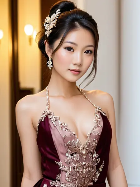 카메라에 어울리는 우아함 포착: 단정한 자세, 우아한 표정, 완벽한 공개적 에너지