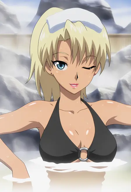masterpiece, best quality, amazing quality, newest, <lora:Dancouga Nova - Seimii:1>, seimii, official style, 1girl, dark-skinned female, blonde hair, blue eyes, lipstick, earrings, breasts,