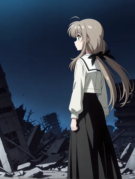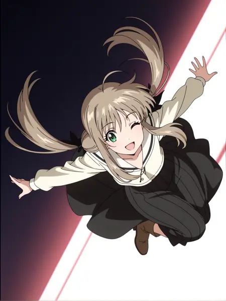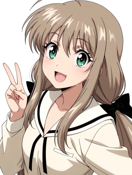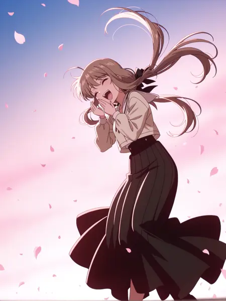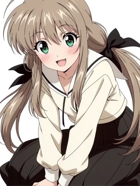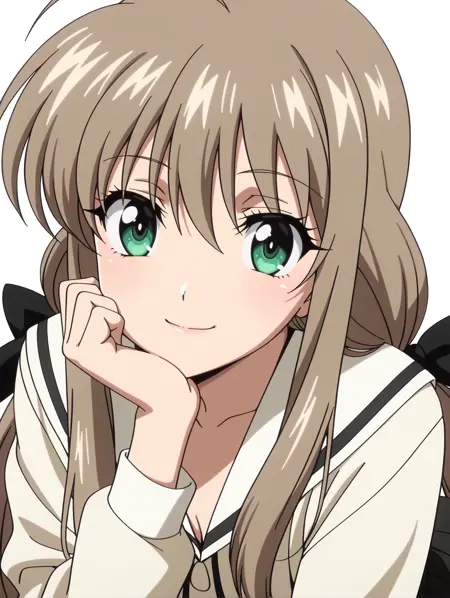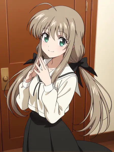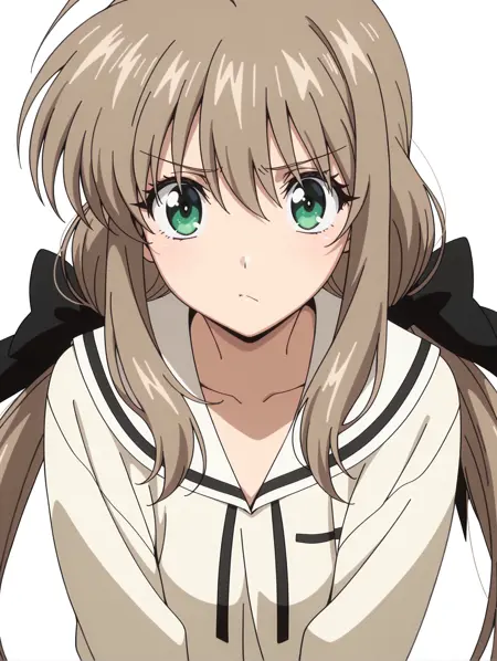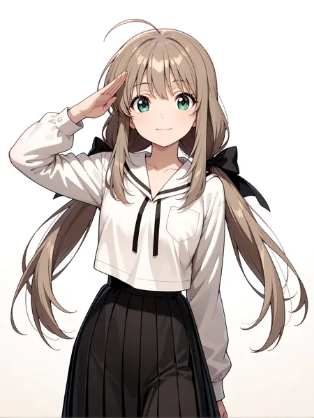 触发词 ・s_soju,ahoge,brown hair,green eyes,black hair bow,low twintails,