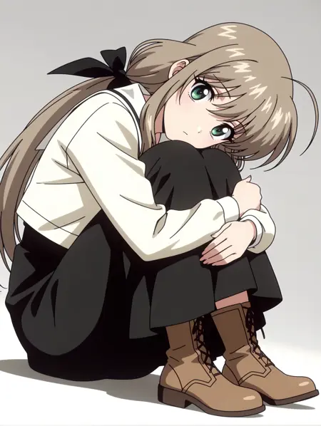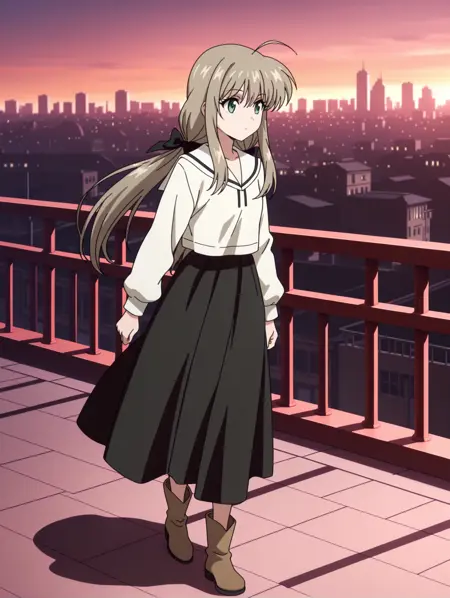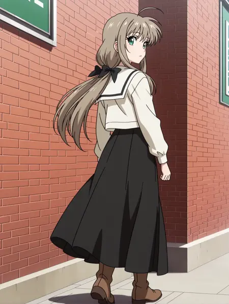 服装 ・s_clothes,white sailor collar,long_sleeves,black long skirt,brown boots,
