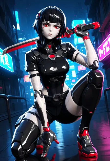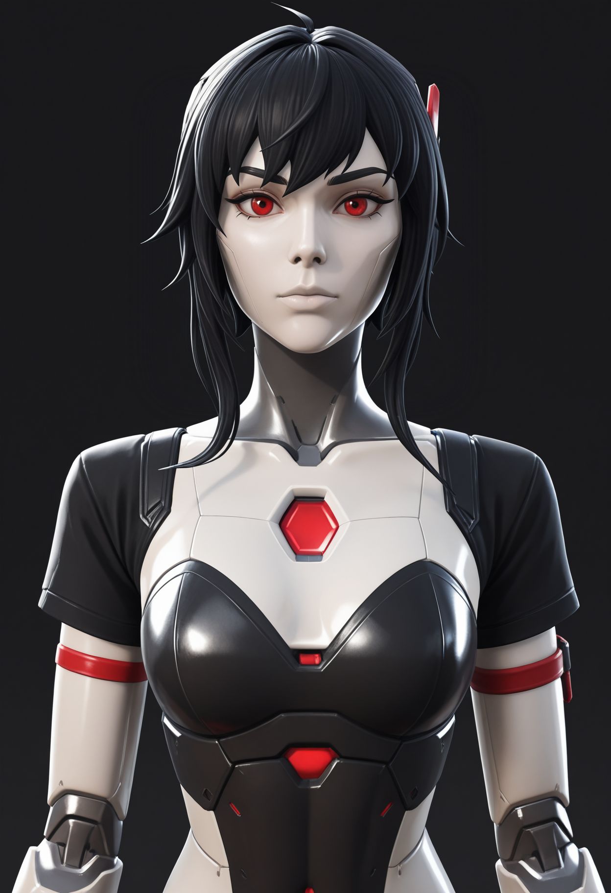 FtNeTsuk1, black hair, red eyes, robot